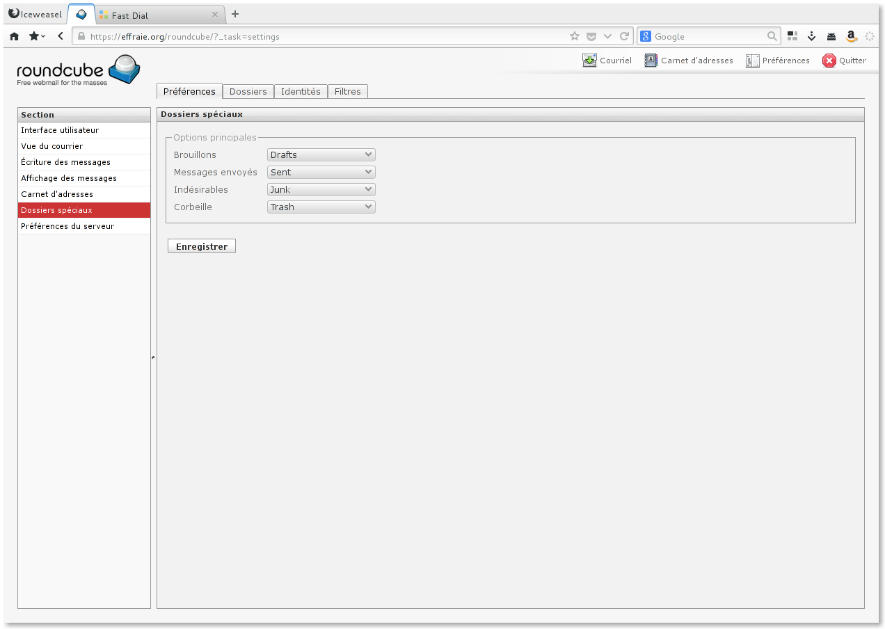 Pour le bon fonctionnement de votre adresse email, cinq dossiers spéciaux sont créés automatiquement :