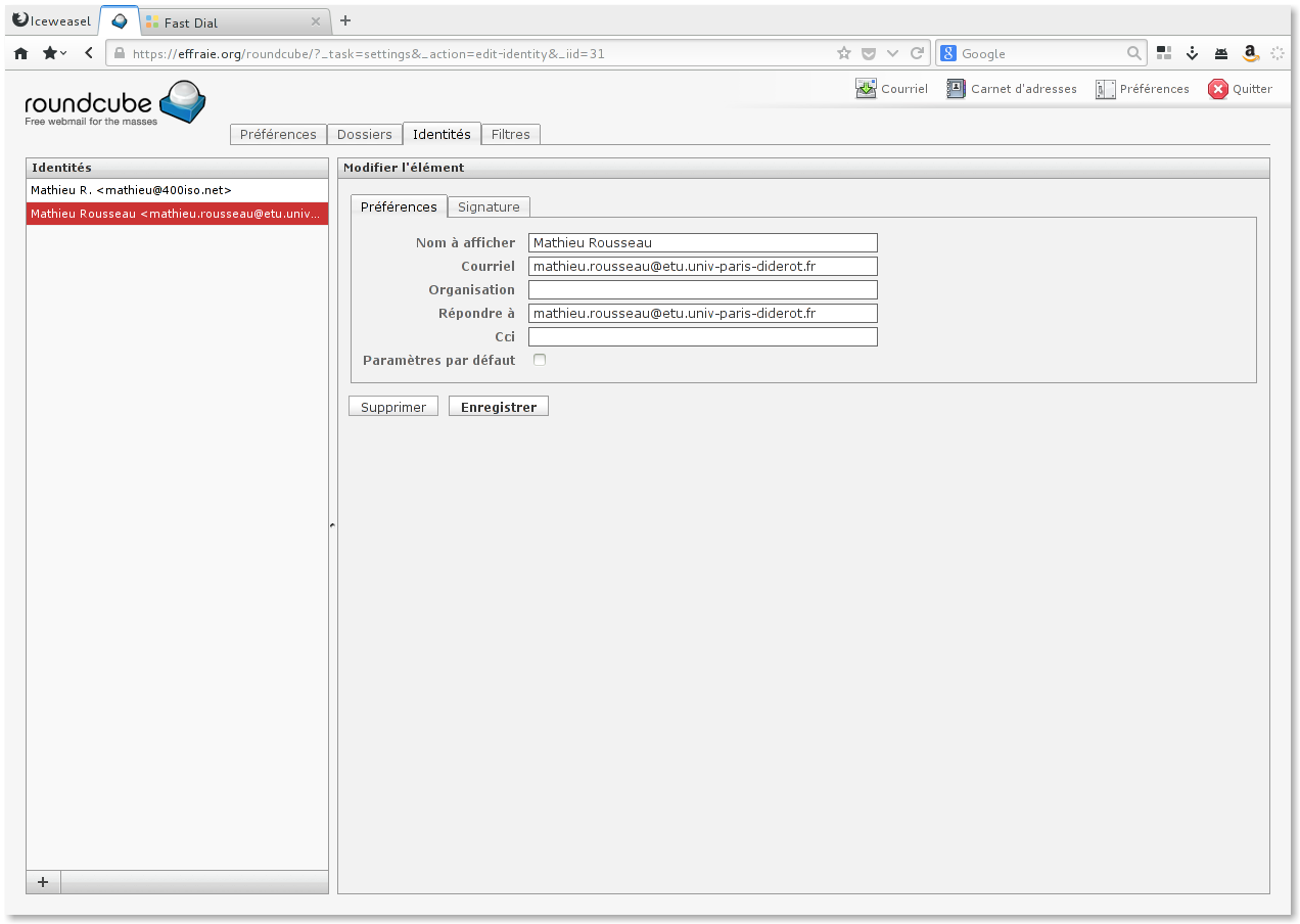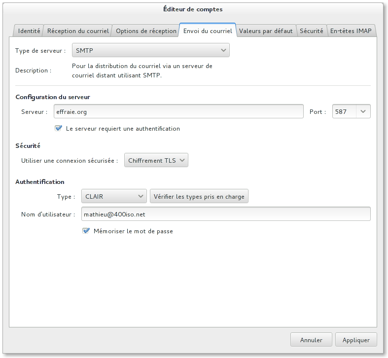 Vous pouvez consulter vos emails sur le webmail : https://effraie.org/roundcube/ ou avec un client mail. La documentation qui suit est valable pour les deux options.
