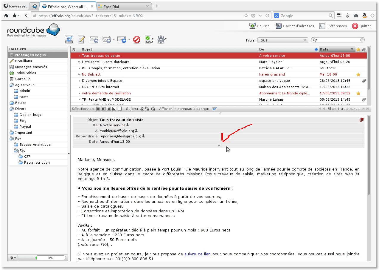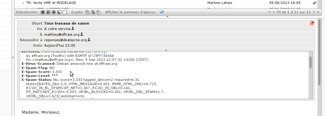 Le serveur est équipé d'un filtre antispam particulièrement efficace, appelé spamassassin.
